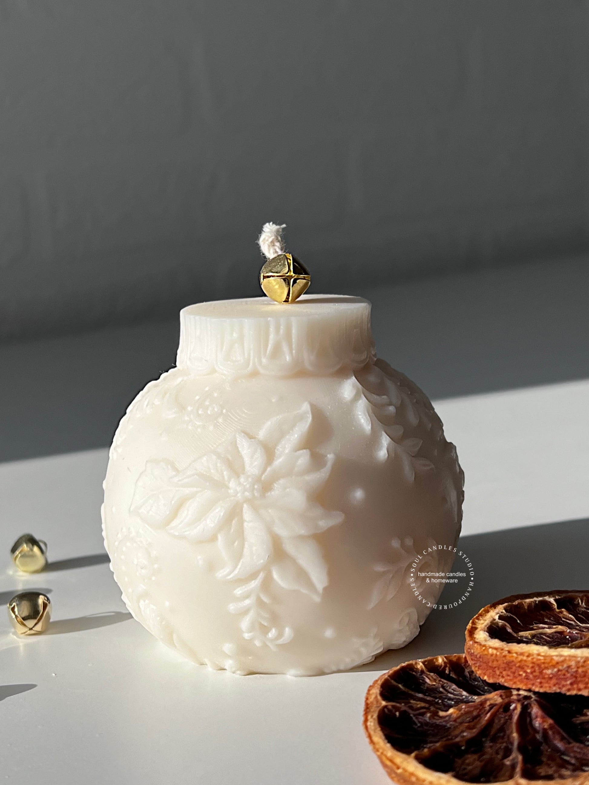 Eine unserer schönsten Kerzen aus der Weihnachtskollektion. Ihr deitailreiches Design lässt die Weihnachtskugelkerze elegant und filigran wirken.